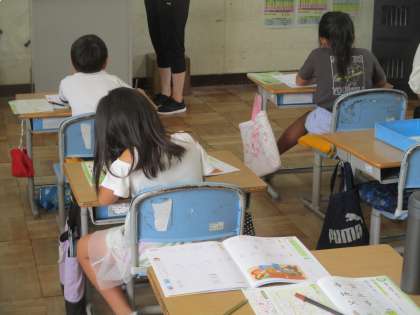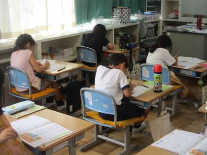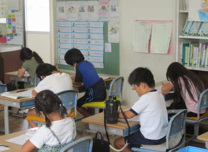 2年生も書写です。みんな一生懸命に取り組んでいます。あっ、とめるところはしっかりとめていますねえ。きれいな字です。