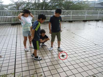 3年生が、亀の散歩に付き合っています。この散歩で、「亀って意外と歩くのが速い」ということを3年生の皆さんは発見したようです。これならウサギが昼寝をしなくても勝てる!?