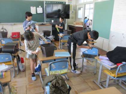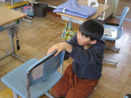 3年生もそうじをしてくれていました。教室や机がピカピカで、次にこの教室を使う学年が気持よく使えます。