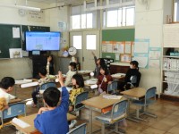 3年生は、タブレットの文字をローマ字の表を見て打ち込みました。