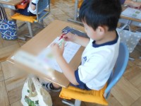 1年生の算数では、数字の書き方を学習していました。今日は、3と4でした。お手本を...