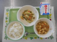 ~今日の献立~4月27日(月)*ごはん*牛乳*麻婆豆腐*ビーフンの中華炒め