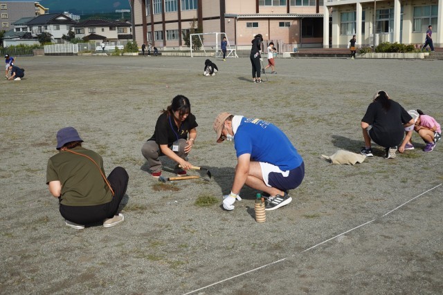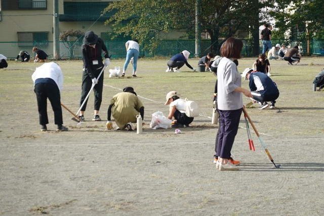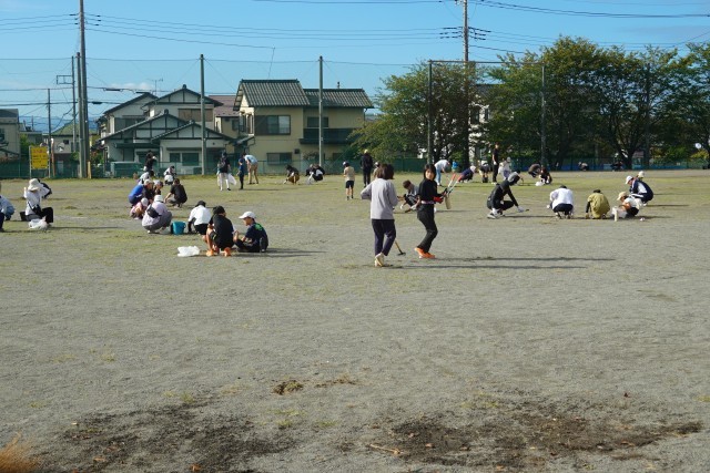 延期したにもかかわらず、60名以上の保護者や教職員、30名以上の子供たちが運動場の草取りや側溝清掃をしてくださいました。