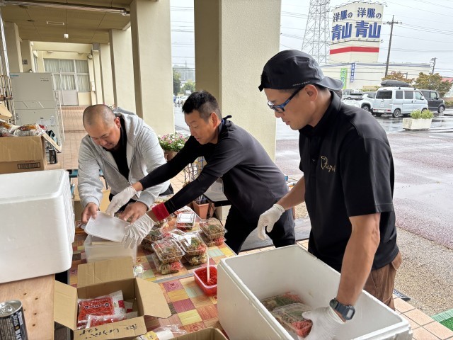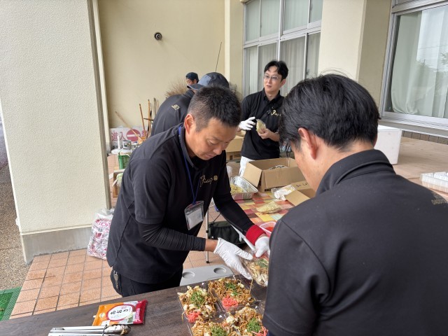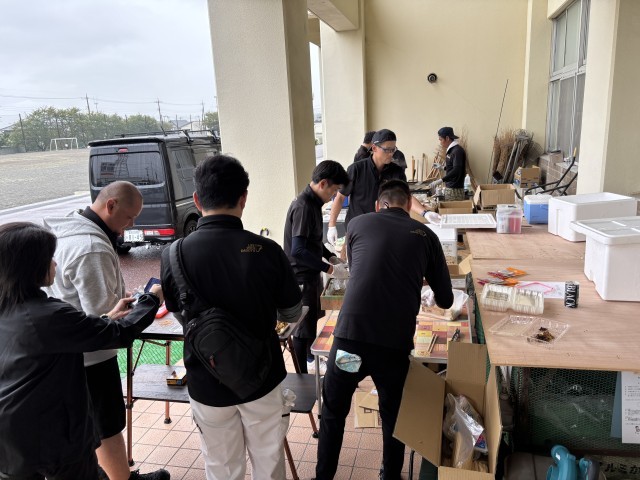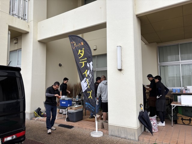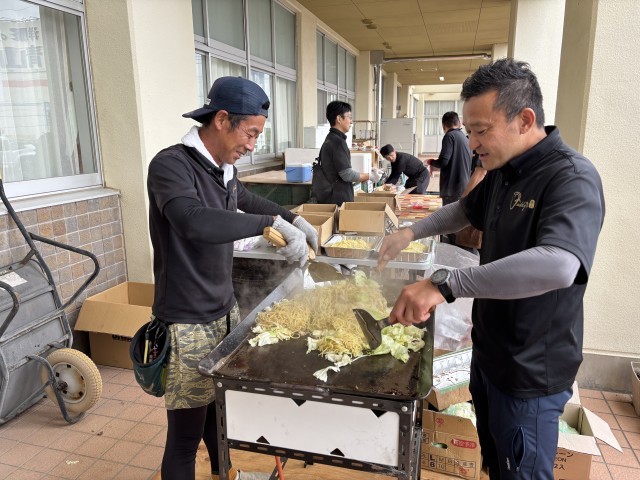 ダディーズのみなさんも午前中から事前準備しておいた材料を南小に運び、焼きそばを作っています。