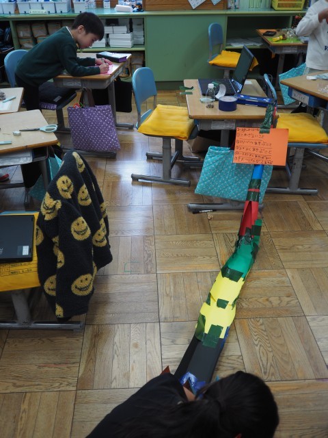 1学期の水のおもちゃ作りのときよりも、自分で考えたり、友達と協力したりする姿が多く見られました。