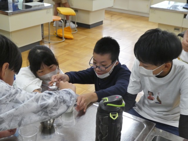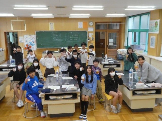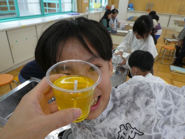 算数の授業風景です。家庭科ではなく・・・?そうなんです。比とその利用という単元です。カルピスは1:4が黄金比(おいしいとされている比)とされています。そこから1:3、1:2など比を利用して自分の好みの味を作っています。「原液が30mlだから水の量は〇〇mlにすれば、1:2になるから・・・。」などと一生懸命考える姿が見られました。