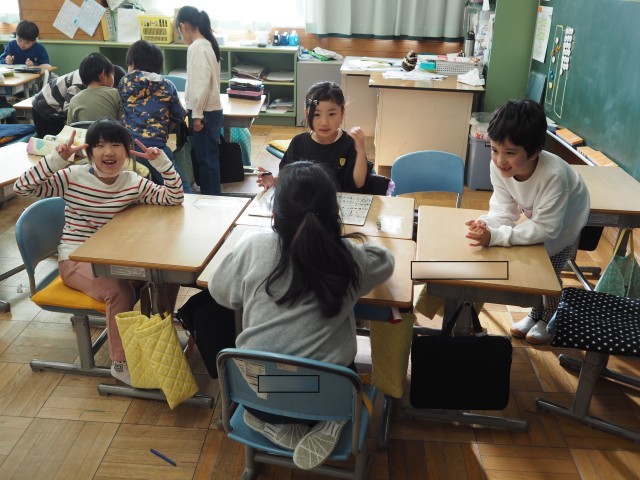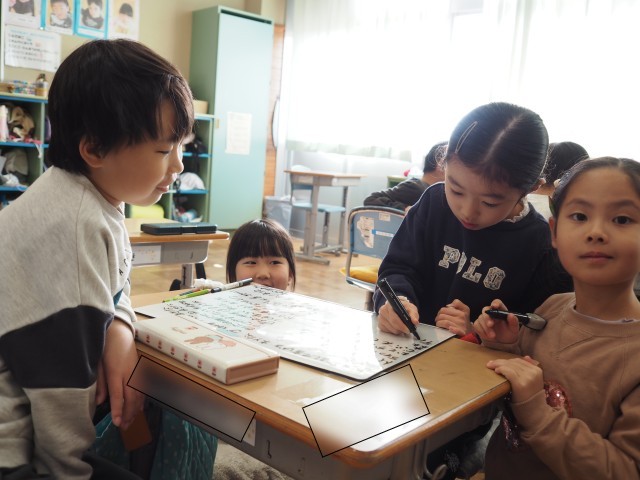 おうちでの家族の様子を思い浮かべて相談しながら考えていました。
