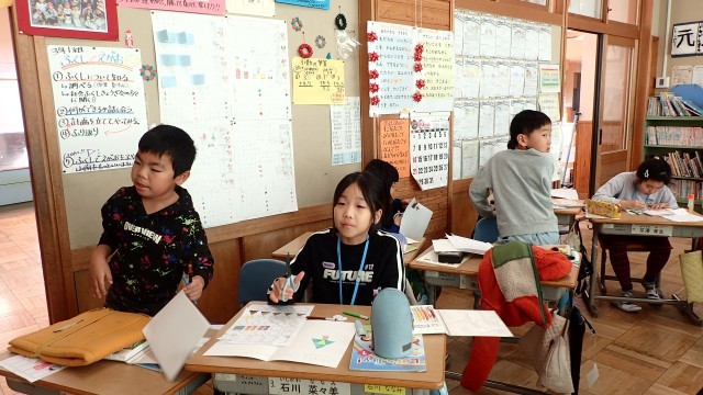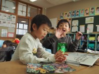 外国語の授業で、色々な形を英語で言ったり、歌ったり、遊んだりしました。
