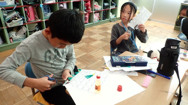 そして、形の学習を生かしてクリスマスカードやサンキューカード、ニューイヤーカード作りをしました。
