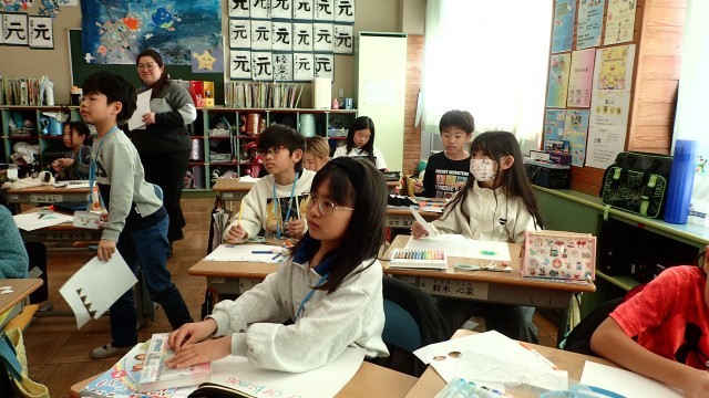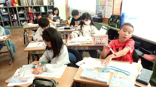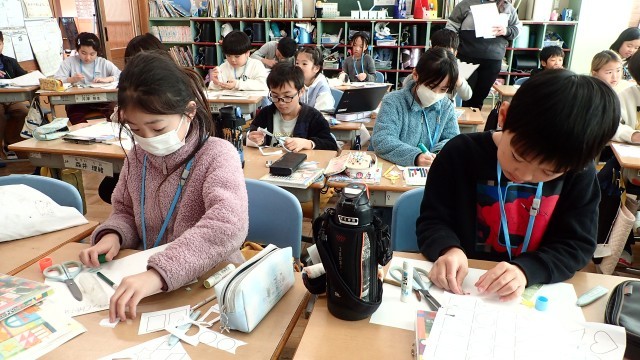 形を何に見立てるか考えて楽しみながら、大切な家族に向けて一生懸命英語を書く姿がありました。