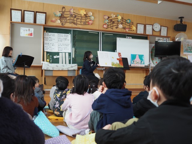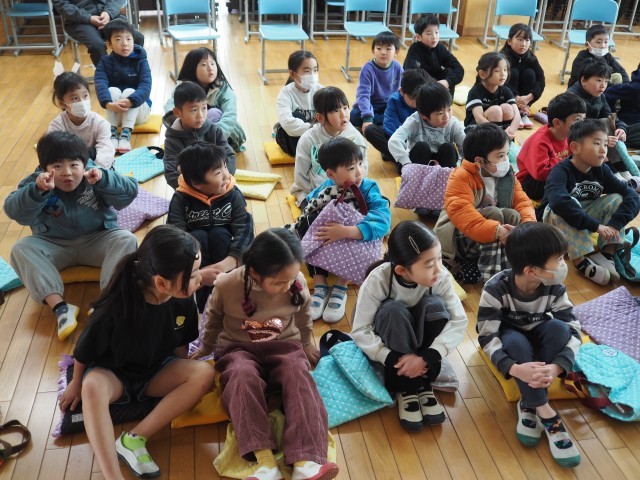 読み聞かせ後には、「悲しい場面では悲しい音楽が流れてた。」、「感動して泣きそうになった。」、「クレヨンは消えちゃったってことだよね。」といろいろな感想をもっていました。