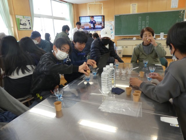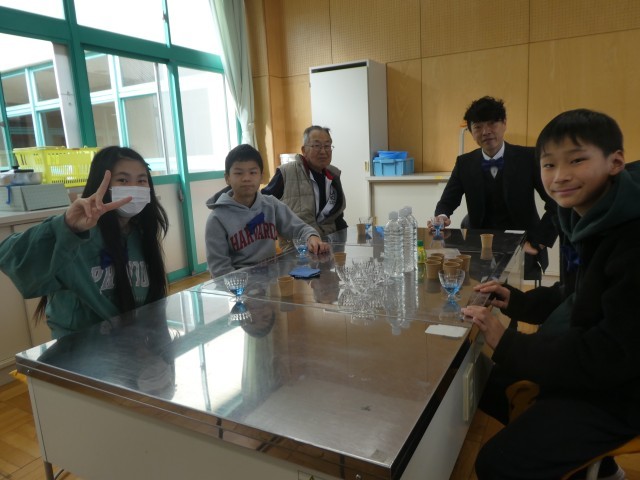 南小周辺の環境整備をしてくださっている地域の方々(シニアクラブ)に感謝の気持ちを伝える会を6年生が行いました。感謝の気持ちを伝えるために、家庭科の学習で作ったコースターを渡したり、昨年のかがやきで使ったバタフライピーカクテルを振る舞ったりしました。