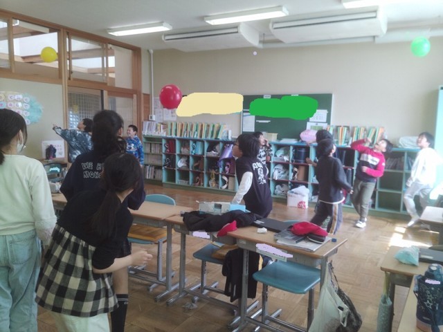 お別れ会で、風船バレーやカフートを行いました。みんなで楽しみ良い思い出となりました。