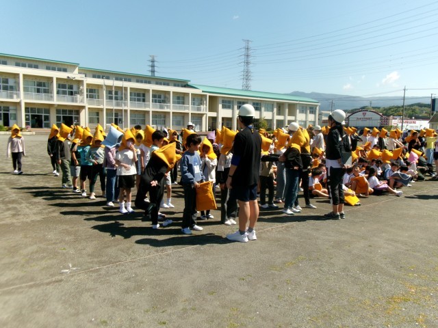 今年度初の避難訓練!しゃべり声もなく、整列もスムーズ。座ったあとも、静かに前を向いて次の指示を待つ姿。すばらしかったです☺
