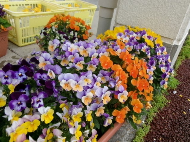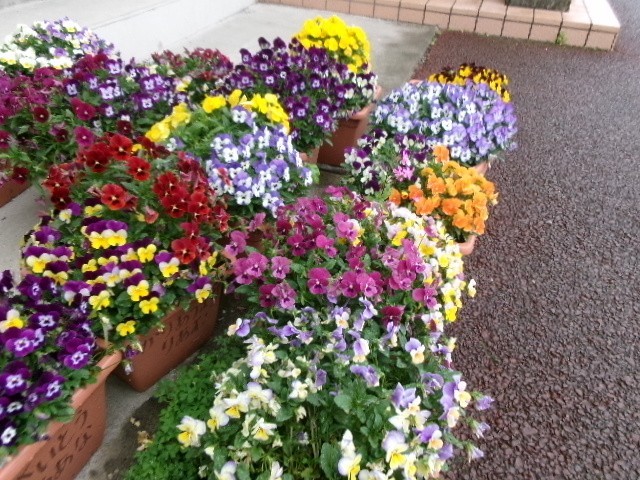2年生のパンジーがもりもり咲いています🌸毎日、心を込めて、お世話をしているからですね!