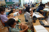 給食の時間に、♫ハッピーバースデイトゥーユー♪と聞こえてきたので、行ってみたら、牛乳で乾杯していました(*^_^*)