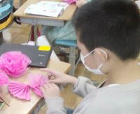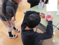 3、お子さんが登校後、付箋を持って担当職員のところ(昇降口)で検温する