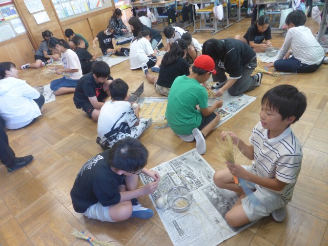 バケツで作った稲の脱穀作業を行いました。手で行うことで昔の人のすごさや大変さを実...