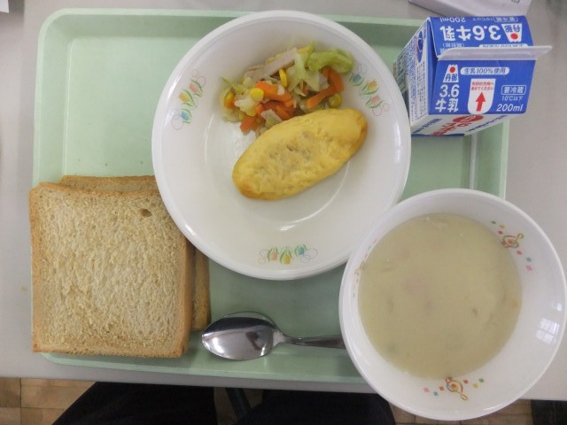 ん?おかしい、、、。今日の黒糖入り角型食パンは、ふだんより固めではなかろうか?水分があまり含まれていないように感じる。パサパサしているというか、、、。まあ、給食センターさんも、毎日膨大な量の給食を作ってくれているんだ、もしかしたら疲れていて水の配分を間違えたということも考えられる。でも、しっとりしていなくても全然いい。いやむしろ、今日は『味変』を楽しもう。いや、もしかしたら『味変を楽しんで』という給食センターさんからの無言のメッセージなのかも。