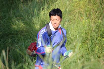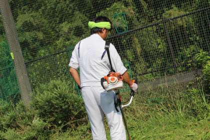 おやじの会を中心に、石脇グランドの草刈り作業を