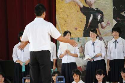 2Bは、同じカラーの3年生の歌声を聞かせて