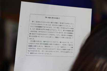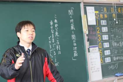 1年C組は、「聞く地蔵と聞かぬ地蔵」という資料を