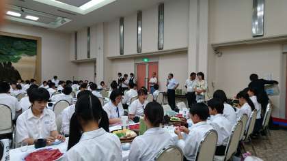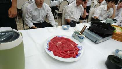 班別研修を終えて、夕飯の時間です。今夜は、すき焼き。食欲旺盛です。