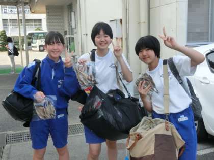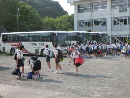 2年生、自然教室から西中へ戻ってきました。おいしそうな手作りの干物を持って、笑顔でバスから降りてくる生徒など、充実した表情の生徒たちの姿が見受けられました。この自然教室で体験したことをを今後の生活に生かしていきたいと思います。