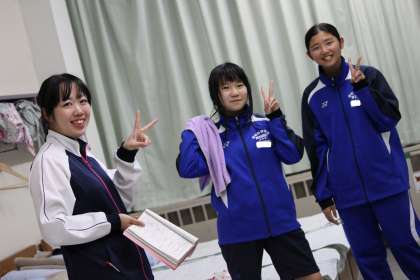 それぞれの学級で、スタンツの練習に励む生徒たち。