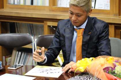 最後に、学校へも色紙を書いてくださったり、