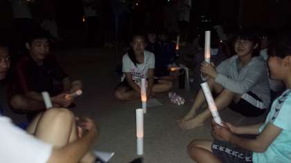 一人一人作成した夢キャンドルを見つめながら自分の夢や将来について語り合います