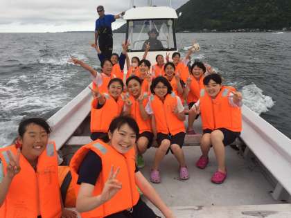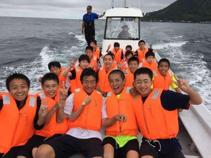 漁船乗船体験では、波に揺れる船上で、漁業の決まりなどを教えてもらいました。
