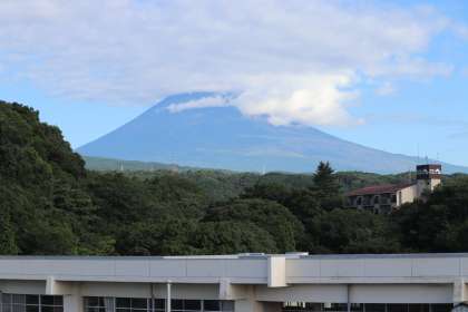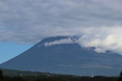 頂上を雲に覆われた今朝の富士山です。