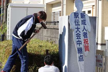 裾野市新成人祝賀駅伝の準備が始まりました。