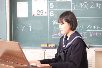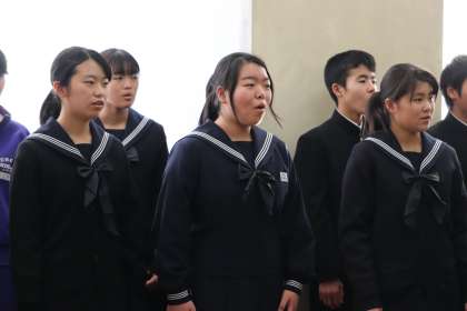 帰りの会で、歓喜の歌の練習が行われています。