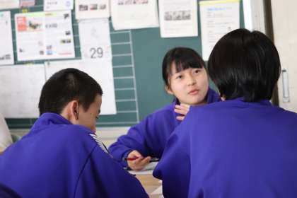 仲間同士で関わり合い、資料を使ってテーマに迫る学習。
