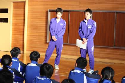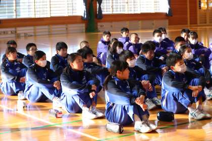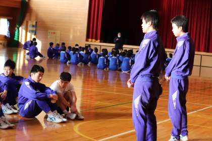 今朝の生徒集会はそれぞれの地区会で、まとめを行いました。