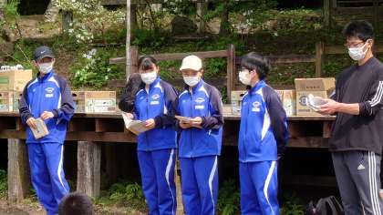 無事にハイキングと蝙蝠穴から帰ってきて、入所式が始まりました。