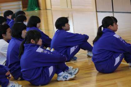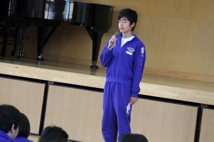 学年集会のはじめに、学習の支援をしてくださる
