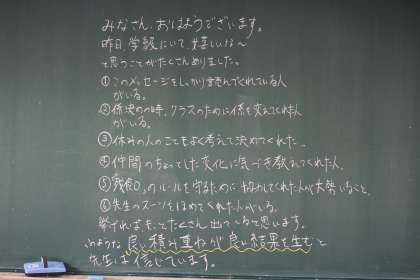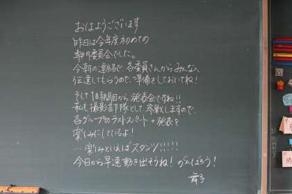 今朝も、学級の黒板には、生徒のことをしっかりと見つめている