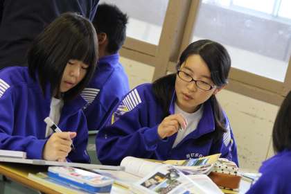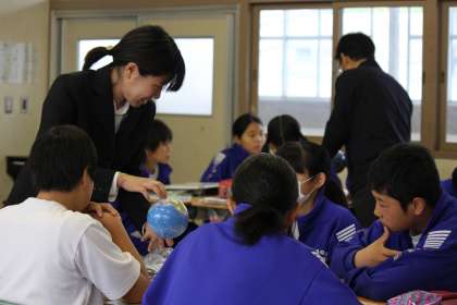 2年生の社会科では、地球儀や地図帳等を活用し、