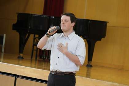 生徒集会の最初の時間を使って、ALTの先生の紹介を