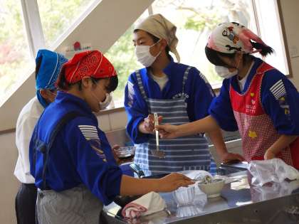 昔懐かしい芋団子を協力し合いながら作っていた生徒たち。