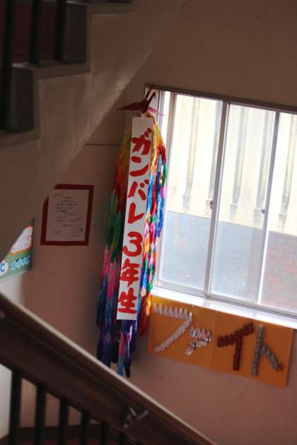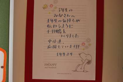 1年生が、中体連の必勝を祈願して、折り鶴を作って