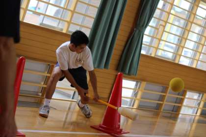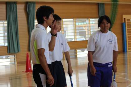 猛暑をものともせず、I組の生徒たちが、富岡中学校で開かれている