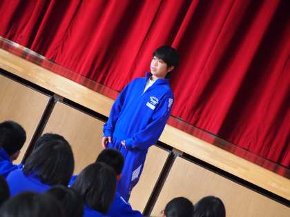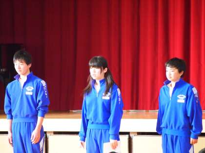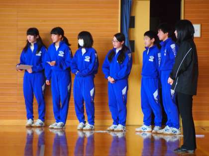 1、2年合同の学年集会が行われ、「3年生を送る会」の