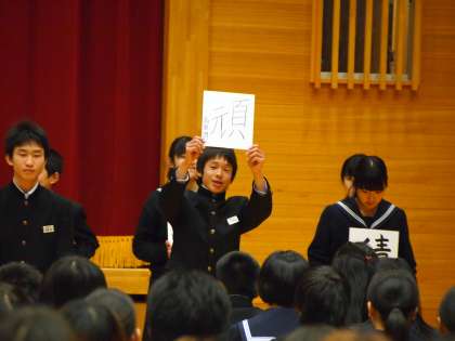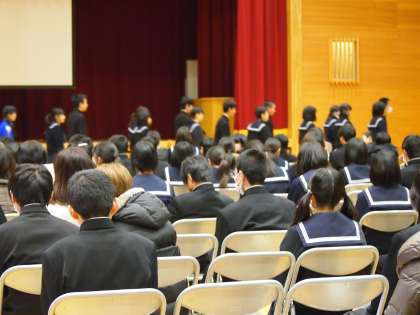 2年生は、総合学習の発表会の後、3年生へ向けての決意表明を