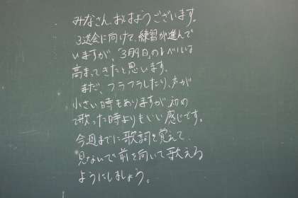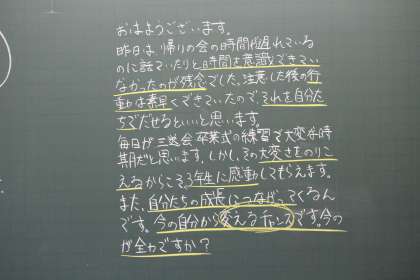 今朝の黒板には、3年生を送る会に向けての