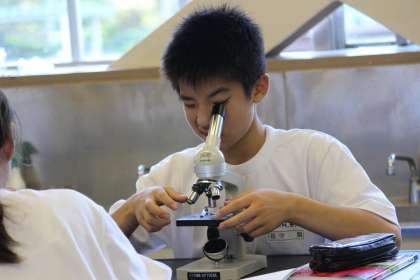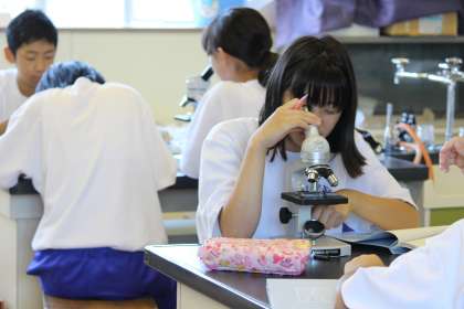 1年生の理科では、顕微鏡を使って、シダ植物の観察を