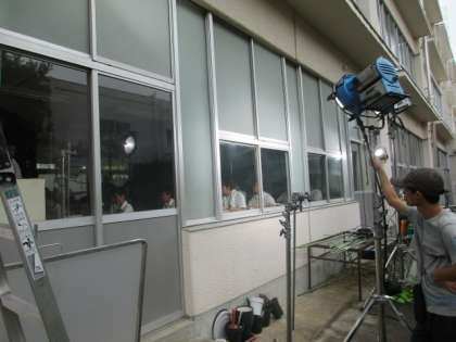 9月17日(月)東中学校で映画の撮影が行われました。来年度秋劇場で公開される「いちごの唄」という新作映画です。